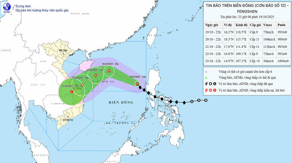 ⚠️ Cấp độ rủi ro thiên tai: Cấp 3 (vùng biển từ Nam Quảng Trị đến Quảng Ngãi, gồm Cồn Cỏ, Cù Lao Chàm, Lý Sơn; đất liền ven biển các tỉnh từ Quảng Trị đến Đà Nẵng).